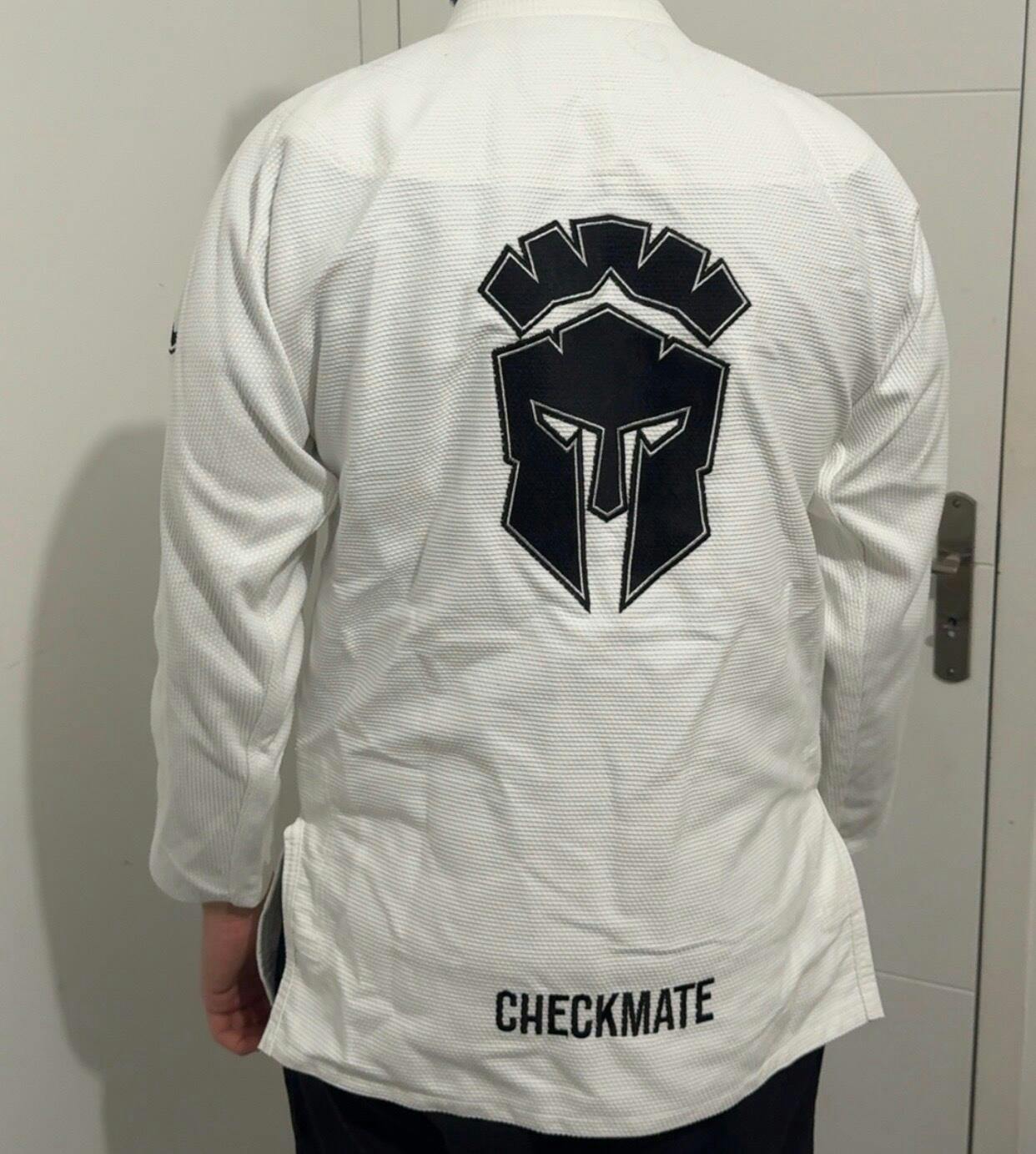 La veste est fabriquée en tissu pearl weave, reconnu pour sa durabilité tout en restant relativement léger. Les zones clés, comme le col et les coutures, sont renforcées pour mieux résister aux saisies et à l’usure au fil des entraînements.